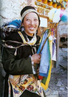 手拿吉祥彩箭的工布婦女