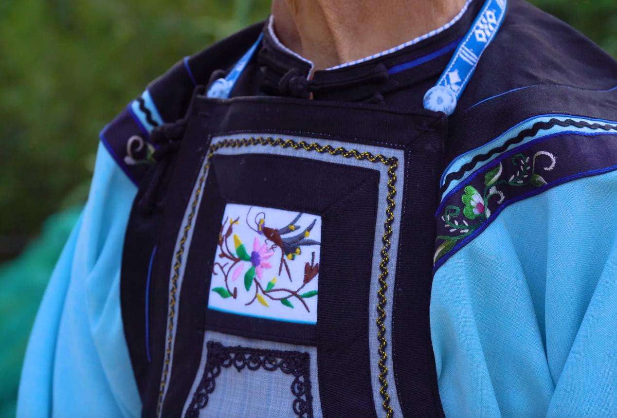傳統(tǒng)服飾是由布依族傳統(tǒng)工藝制作而成,其上衣以藍(lán)色打底的斜襟衣和白色打底的圍腰為主,上衣對(duì)襟處繡有花草圖案作為裝飾,圍腰上部也繡有花草圖案作為描邊。下身則以黑色長(zhǎng)褲和灰色長(zhǎng)褲為主,衣飾上所有的雕花刺繡圖案全部出自之手。多從市場(chǎng)上購(gòu)買。其上身對(duì)襟處和圍腰上部也繡有花紋圖案,但是這些花紋圖案則是現(xiàn)代機(jī)器之功,下身以黑色打底的長(zhǎng)褲為主,在褲腳處繡有花草圖案,上板村布依族女性們還有一個(gè)習(xí)慣,就是不管是穿戴傳統(tǒng)服飾還是現(xiàn)代服飾都會(huì)戴有黑色圓帽。