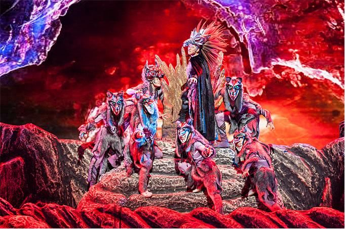主創(chuàng)團隊選取“賀蘭山巖畫”“巖羊”等寧夏獨有的文化元素符號,以賀蘭山巖畫標志性的“太陽神”作為人物原型,以三個部落之間的結(jié)盟和沖突作為戲劇主線,準確地將巖畫藝術(shù)與雜技藝術(shù)巧妙融合,使其成為既有濃郁地域文化特色,又有巨大時空張力,更有人類共同情懷的雜技劇。