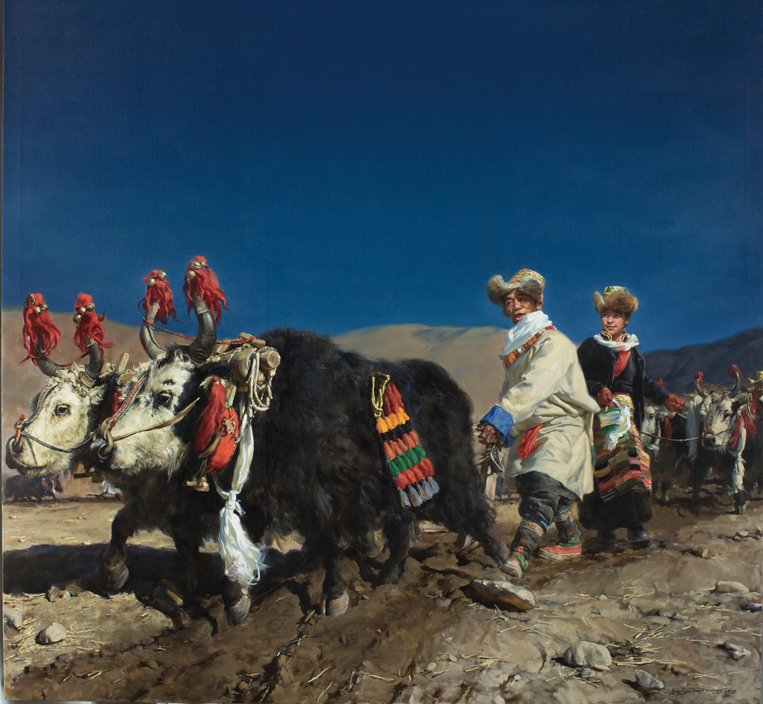 農(nóng)業(yè)。藏區(qū)的主要農(nóng)作物有青稞、小麥、豌豆、油菜、蕎麥等。過(guò)去,藏族的農(nóng)業(yè)區(qū)生產(chǎn)工具比較落后,傳統(tǒng)的耕地方式是“二牛抬杠”。即在犁的前轅上拴一橫杠,橫杠兩頭分別固定在兩頭牛的脖頸上,一人扶犁并揚(yáng)鞭趕牛犁地。舊時(shí),木犁的犁尖由堅(jiān)硬的青岡木做成,入土兩三寸,有的地方在木犁尖是套上鐵犁尖,入土更深。藏區(qū)的川壩地比較肥沃,可以連年耕種,山坡地較貧瘠,種兩年就要休耕一年,名曰歇地。