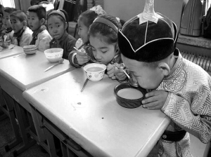 圖為孩子們?cè)谏蟼鞒忻褡逦幕厣故菊n。奶茶原為中國(guó)北方游牧民族的日常飲品,至今已有千年歷史,蒙古奶茶至今仍然是日常飲用及待客的必備飲料。陳巴爾虎旗民族小學(xué)開(kāi)展了具有濃濃的民族風(fēng)味的實(shí)踐活動(dòng)課,通過(guò)一起熬制奶茶,學(xué)生和家長(zhǎng)、老師們都受益匪淺。