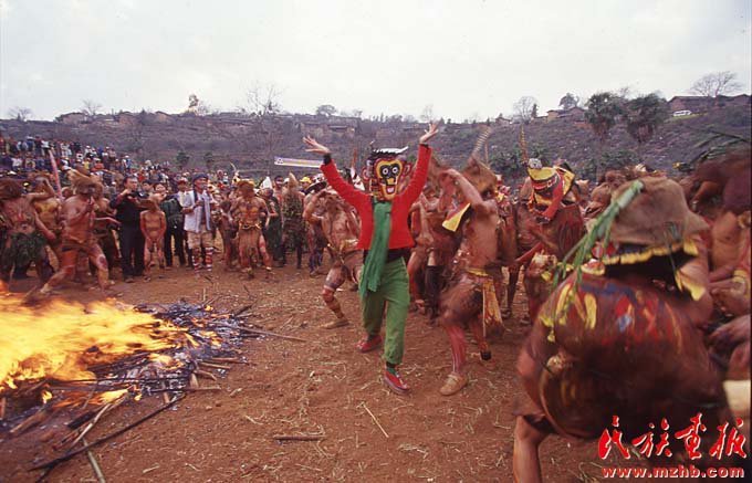 2000年后,楊麗萍將更多的精力投入到云南民族文化的挖掘整理中。圖為她在彝族祭火現(xiàn)場(chǎng)參與表演(民族畫報(bào)資料)