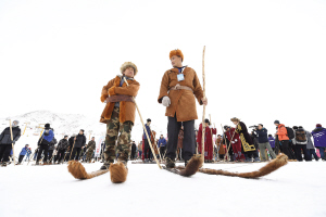 迎接完成阿爾泰山300公里滑雪穿行的9位勇士,是此次活動的重要環(huán)節(jié)。1月5日,阿爾泰山區(qū)的9位牧民,踩著傳統(tǒng)的毛皮滑雪板,從阿勒泰地區(qū)哈巴河縣鐵熱克提鄉(xiāng)白哈巴村出發(fā),歷時11天,抵達阿勒泰市將軍山滑雪場,完成了穿越阿爾泰山的挑戰(zhàn)。