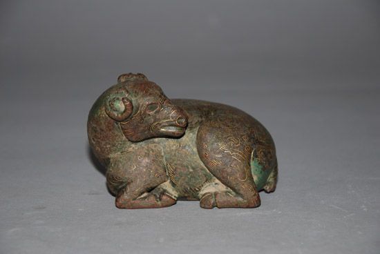 錯(cuò)金銀回首臥式銅羊