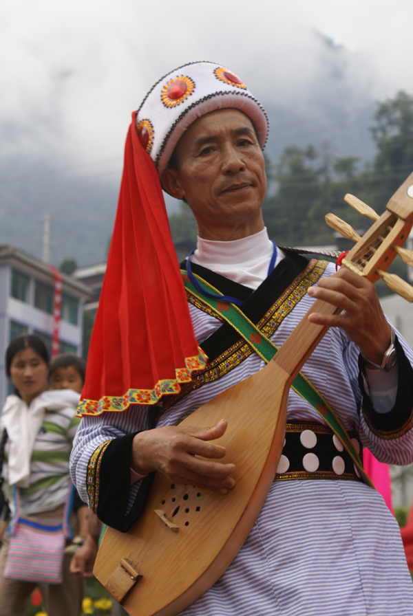 傈僳族民間器樂藝術具有獨特的民族風格和特色,在傈僳族民間音樂中有重要地位。其種類主要有琵琶(劉軍攝)、口弦、竹笛、葉笛、葫蘆笙(劉軍攝)、二胡等。