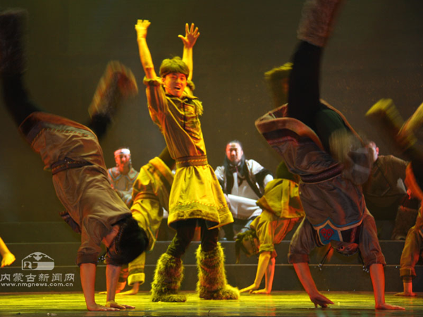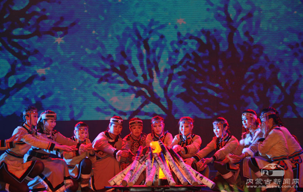 演員們的表演也頗為出色。參演的60多名演員全部來自鄂溫克自治旗烏蘭牧騎,這是一支以年輕人為主的隊伍,他們在舞臺上的精彩表現(xiàn)給這部歷史題材的歌舞劇增添了青春的活力。比如“搶樞”一場,不僅形象地再現(xiàn)了鄂溫克民間一項傳統(tǒng)娛樂活動——“搶樞”,突顯了年輕人活潑好動的特點,而且傳達(dá)出鄂溫克年輕人在遷徙途中不畏艱險、苦中作樂的頑強精神。尤其是在本場最后,小伙子們一段奔放狂野的群舞盡顯陽剛之美,展現(xiàn)了鄂溫克民族的豪爽與激情。