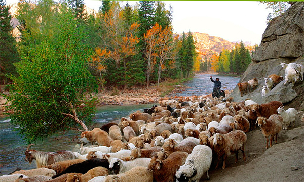 我國(guó)的主要牧業(yè)區(qū)在內(nèi)蒙古自治區(qū)、新疆維吾爾自治區(qū)、西藏自治區(qū)和青海省、四川省與云南省。從事畜牧業(yè)經(jīng)濟(jì)的主要有蒙古族、藏族、哈薩克族、柯爾克孜族、塔吉克族、裕固族,養(yǎng)殖牛羊較多的還有回族、維吾爾族、彝族、羌族、納西族等民族。畜牧業(yè)生產(chǎn)為廣大群眾提供了豐富的肉制品和乳制品。新疆蒙古族牧民晾曬羊肉干被稱為蒙古羊系之冠的“烏珠穆沁肥尾羊”,成年公羊重達(dá)100多公斤,光尾巴就有10公斤重,肉美味鮮,肥而不膩,鮮而不膻,北京“東來順”的涮羊肉采用的就是這種羊肉,受到中外賓客普遍稱贊。內(nèi)蒙古自治區(qū)養(yǎng)殖的三河羊和草原紅牛也是肉乳兼用的優(yōu)良品種。