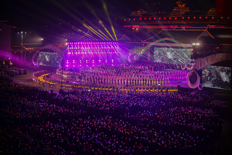 2017年12月18日,中國(guó)侗年暨第八屆侗文化旅游節(jié)在貴州省黎平縣開(kāi)幕,萬(wàn)人同唱侗族大歌 (瞿宏倫 / 攝)