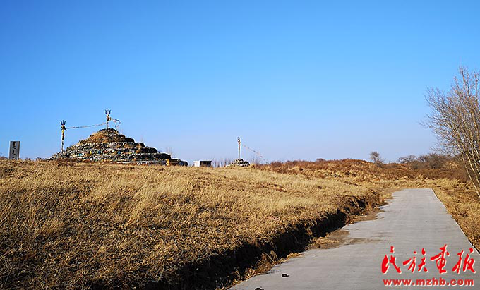 內(nèi)蒙古通遼市科爾沁左翼中旗白音塔拉農(nóng)場(chǎng)蒙古族特色濃郁,遠(yuǎn)處一座新壘起的敖包承載著當(dāng)?shù)剞r(nóng)牧民的心靈寄托和新年期望