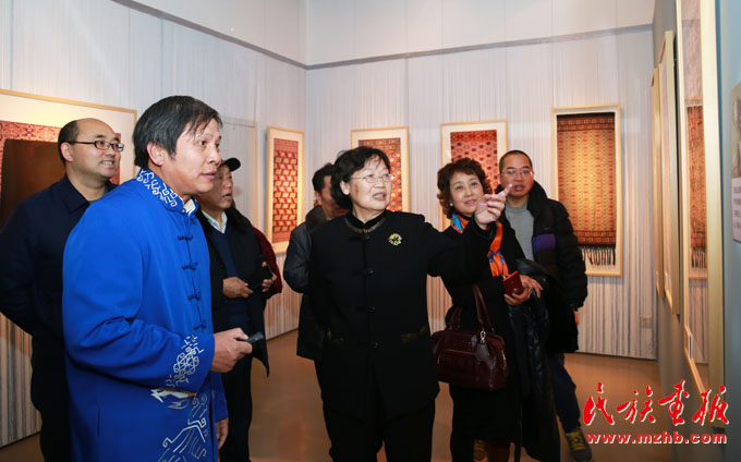 座談會上,中國民族博物館副館長張志文介紹說:土家族是一個古老的民族,有著4000多年的文明發(fā)展史。土家族在全國有2個自治州、8個自治縣,人口達(dá)835萬。土家織錦從秦漢時期萌芽,歷經(jīng)賨布、溪布、斑布、土錦等幾個發(fā)展階段,在明、清時期開始定型,至今已有2000余年的燦爛歷史。中紀(jì)委駐財政部紀(jì)檢組原組長、全國婦女手工編織協(xié)會副會長賀邦靖說:土家織錦是土家婦女智慧的結(jié)晶,是武陵山區(qū)文化精準(zhǔn)扶貧的重點(diǎn)項(xiàng)目之一。從這個展覽上我們不僅可以看到土家織錦的燦爛與美麗,還可以看到國家實(shí)施文化精準(zhǔn)扶貧的實(shí)效。