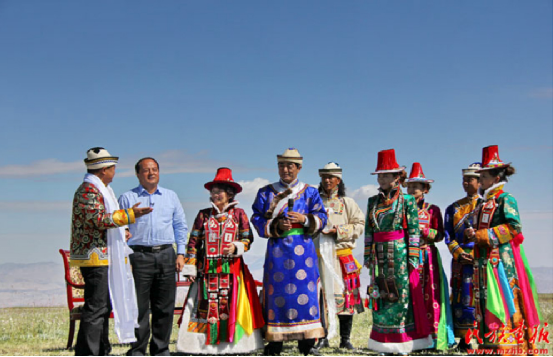 CCTV7《鄉(xiāng)約》欄目錄制現(xiàn)場。向全國觀眾介紹肅南縣及裕固族文化。央金攝 引自民族畫報(bào)