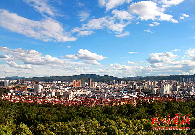 藍(lán)天白云下美麗的楚雄彝族自治州楚雄市區(qū)