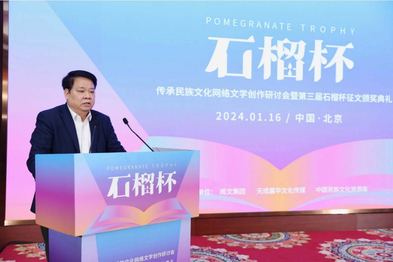1月16日,由閱文集團(tuán)、北京天成嘉華文化傳媒主辦的“傳承民族文化網(wǎng)絡(luò)文學(xué)創(chuàng)作研討會(huì)暨第三屆石榴杯征文頒獎(jiǎng)典禮”在北京民族文化宮舉行?;顒?dòng)貫徹國(guó)家民委和中國(guó)作協(xié)聯(lián)合發(fā)出的《關(guān)于以鑄牢中華民族共同體意識(shí)為主線推動(dòng)新時(shí)代民族文學(xué)事業(yè)高質(zhì)量發(fā)展的意見(jiàn)》的精神,旨在突出民族團(tuán)結(jié)主題,鼓勵(lì)民族題材創(chuàng)作,挖掘具有市場(chǎng)開(kāi)發(fā)潛力的網(wǎng)文作品,推動(dòng)“民族 IP”轉(zhuǎn)化。