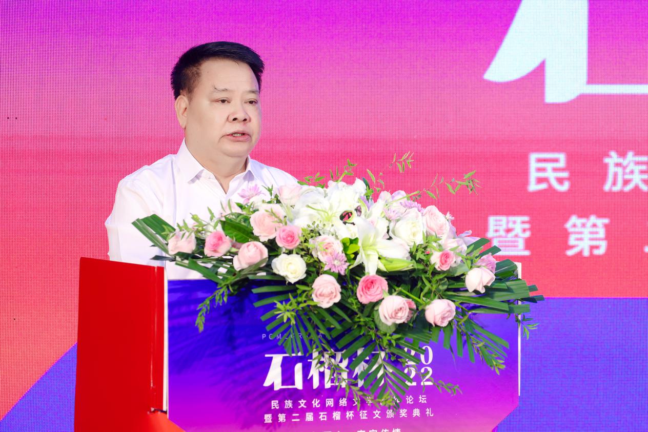 2022年9月17日,民族文化網(wǎng)絡(luò)文學(xué)創(chuàng)作論壇暨第二屆石榴杯征文頒獎活動在民族文化宮舉行。本次活動得到了國家民委所屬中國少數(shù)民族文化藝術(shù)促進會和中國紀實文學(xué)研究會的指導(dǎo)與支持,由閱文集團、北京天成嘉華文化傳媒主辦,天成達星國際傳媒承辦。