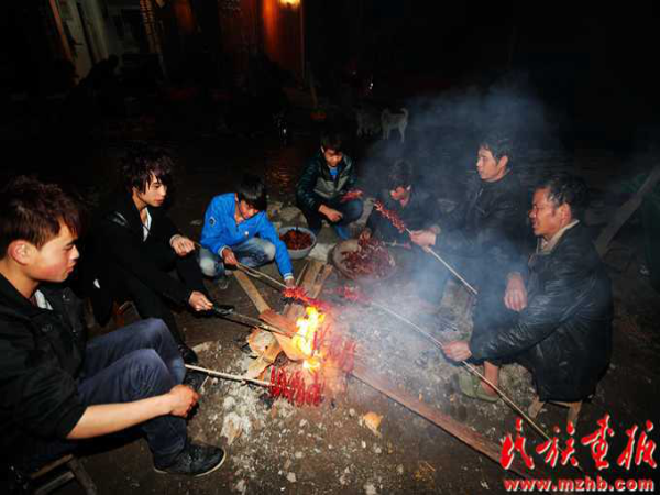這次結(jié)婚的共有15對(duì)新人(多時(shí)有二三十對(duì)),均來(lái)自本寨的青年男女?;槎Y從大年二十六開(kāi)始,共進(jìn)行三天,在三天的婚禮中新郎新娘家均有婚宴,尤以第一天中午的規(guī)模最大也最為隆重。