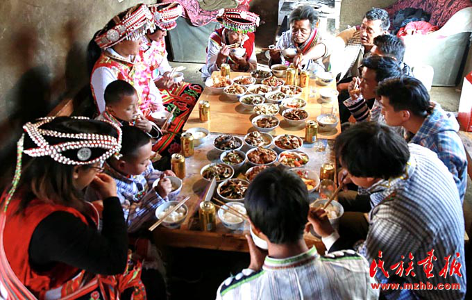 “過去我們一家吃除夕團(tuán)圓飯,有點(diǎn)肉就不錯(cuò)了,哪會(huì)有如此豐盛的宴席。你看如今這滿桌子十幾道菜,吃不完、喝不完,全靠黨和國家的政策好啊。”在談到春節(jié)的變化時(shí),云南省維西傈僳族自治縣保和鎮(zhèn)臘八底村的蜂大興深有體會(huì)。
