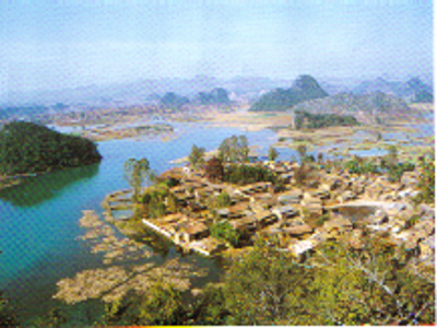 在一次學(xué)術(shù)會議上,筆者請教了首倡并主導(dǎo)“民族文化生態(tài)村”試點(diǎn)建設(shè)的尹紹亭教授,得知在他們首期的五個試點(diǎn)村落建設(shè)中,仙人洞村是比較成功的,于是在本項(xiàng)目的調(diào)查中,仙人洞村成為重點(diǎn)考察的對象之一。“仙人洞彝族文化生態(tài)村”位于云南丘北縣城西北16公里的普者黑湖畔?!捌照吆凇睘楫?dāng)?shù)匾妥迦瞿嵴Z,意為“魚蝦多的湖潭”。普者黑實(shí)際是由眾多湖泊、河流構(gòu)成,總面積達(dá)165平方公里,已經(jīng)開發(fā)成由5個景區(qū)、56個景點(diǎn)組成的滇東南國家級著名旅游景區(qū)。