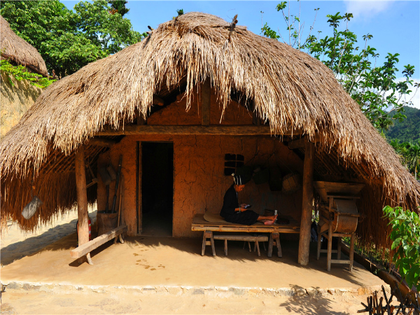 船形屋有高腳船形屋與矮腳(落地式)船形屋之分,外形像船篷,呈拱形。船形屋的建筑特點(diǎn)是,平面呈縱長(zhǎng)方形,兩端山墻設(shè)入口,屋蓋一般是半圓拱形,房屋的輪廓像是一條倒扣的帆船。這類房屋不設(shè)窗戶,只從兩端開門,前面有一個(gè)陽臺(tái),置一個(gè)樓梯供上下,進(jìn)門后整個(gè)“船”身分為三節(jié),像三個(gè)艙,各有小門相通,第一節(jié)是“廳”,設(shè)有閣樓,存放糧食與雜物、家什等;第二節(jié)是臥室,除了放床以外,還放火灶,作為蒸酒或烤火之用;第三節(jié)面積最小,開一個(gè)后門,是每天舂米和放置生產(chǎn)工具、雞窩的地方。
