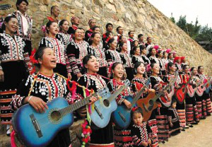 拉祜族是一個古老的民族,聚居在瀾滄江兩岸的云南臨滄、思茅地區(qū),有人口40余萬。如今,除了《婚誓》,還有一首更為流行的歌曲《快樂拉祜》,成為拉祜族的文化標志?!犊鞓防铩返膭?chuàng)作者、拉祜族女歌手李娜倮的家鄉(xiāng),就是全寨四分之一人口都會彈吉他的“吉他之鄉(xiāng)”——云南瀾滄拉祜族自治縣酒井哈尼族鄉(xiāng)老達保寨子。