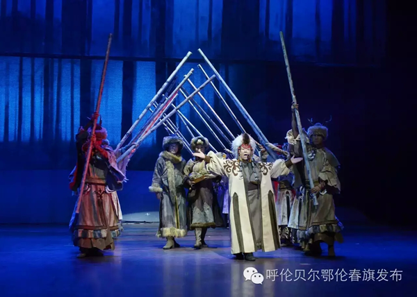 《勇敢的鄂倫春》,由烏蘭托嘎擔任藝術總監(jiān),塞納為編劇,三虎、丹德爾(俄羅斯)、吳莽三人出任總導演;全體演職人員63人,由鄂倫春自治旗烏蘭牧騎專業(yè)人員和15名群眾演員組成,其中鄂倫春族藝術家曲云、白娟為國家一級演員,鄂倫春族群眾演員來自獵民村與相關城鎮(zhèn),演員隊伍中年齡最大的71歲,最小的7歲。演出團隊中鄂倫春族演員占到了接近一半?!队赂业亩鮽惔骸芬远鮽惔好褡濯氂械尼鳙C文化為主線,詩意地講述了狩獵生活的全過程,生動鮮活地展示了鄂倫春民族勇敢、細膩的民族精神和性格特征。該劇還采用了高于原生態(tài)表現手段的唯美手法,將古樸的民族傳統文化與現代藝術元素巧妙地結合在一起,既尊重了民風民俗,又符合當代人的欣賞趨向,煥發(fā)著動人心魂的強大魅力。