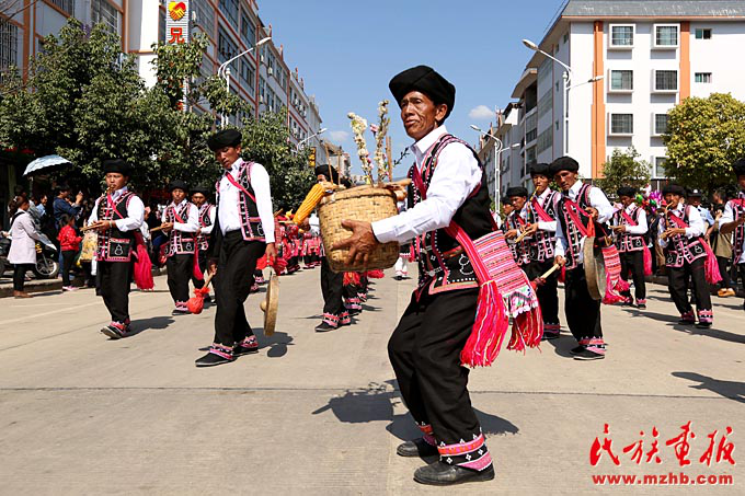 正月初三,鄉(xiāng)鎮(zhèn)拜年隊伍走進(jìn)縣城(瀾滄縣民宗局供圖)