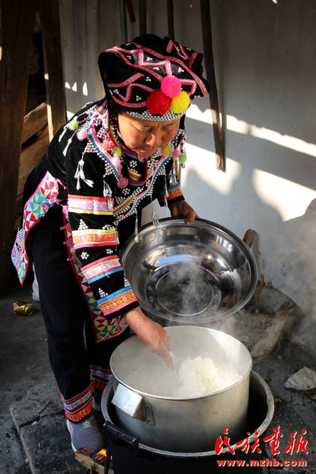 張俊波的母親燜了一鍋糯米飯,準(zhǔn)備舂粑粑