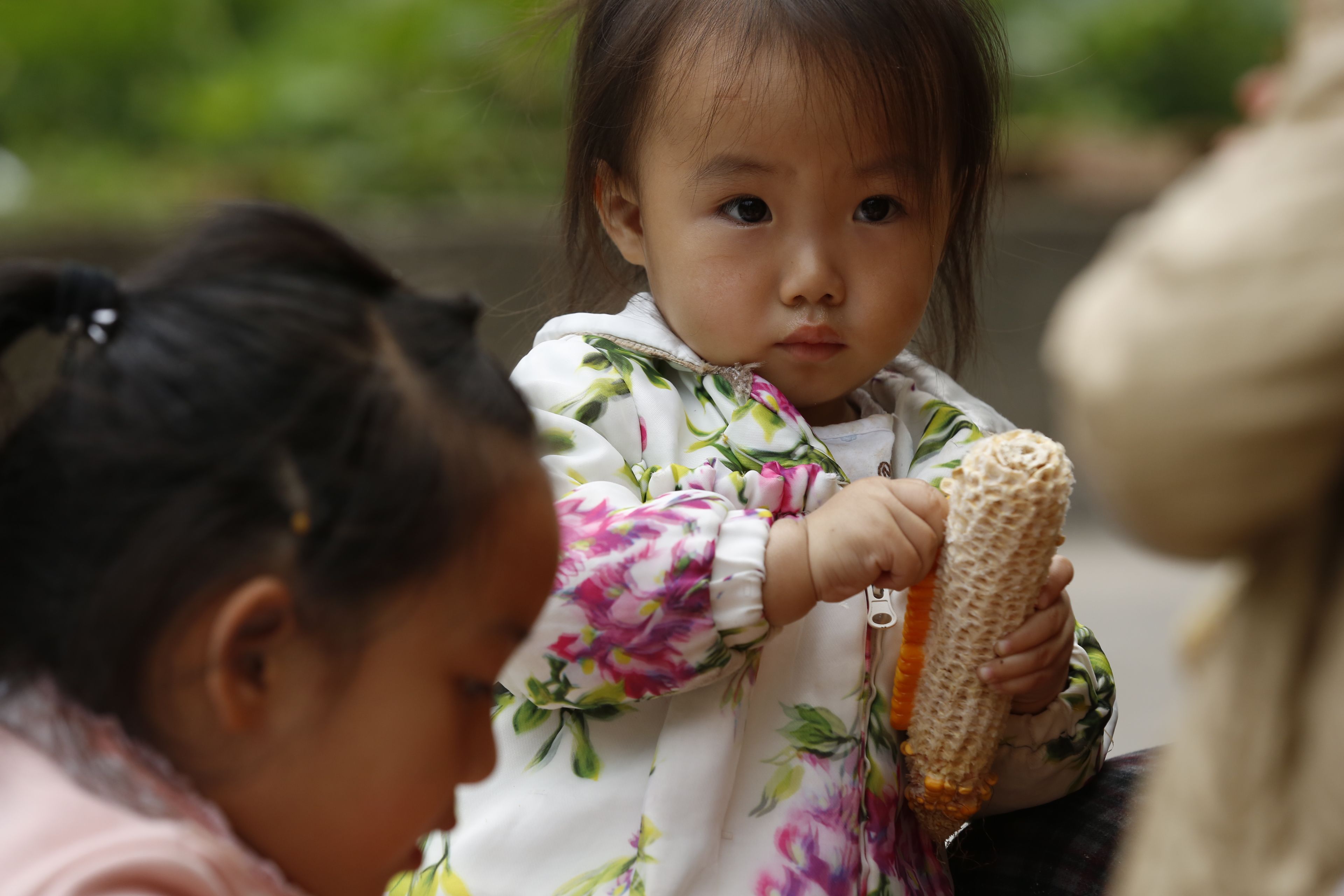 苗族老年人與兒童剝玉米1