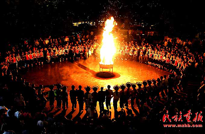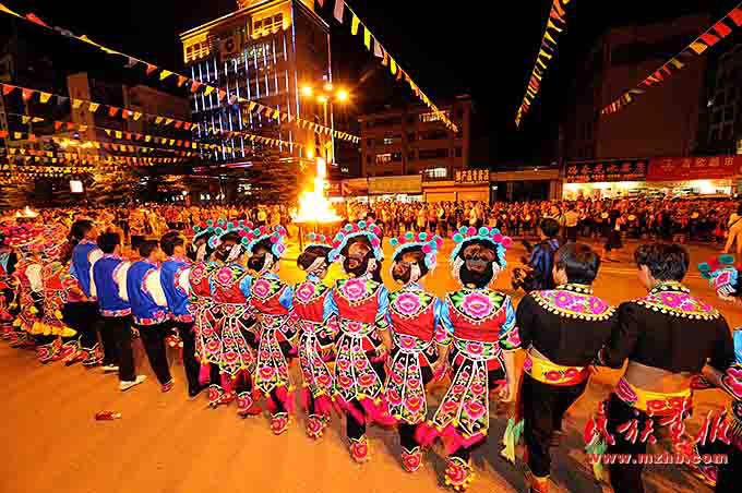 火把節(jié)是彝族傳統(tǒng)節(jié)日中最普遍、最隆重、最富有民族特色的節(jié)日,一般在農(nóng)歷六月二十四至二十六舉行,楚雄彝族火把節(jié)于2006年5月經(jīng)國務院批準為第一批國家級非物質(zhì)文化遺產(chǎn)保護項目。節(jié)日內(nèi)容集民俗活動、經(jīng)貿(mào)活動、文體活動和社交活動于一體,像磁石一樣吸引著各族群眾,許多人就是通過參加火把節(jié)認識了彝族,知道了楚雄彝族自治州的。節(jié)日期間,各族人民載歌載舞,耍火把、放焰火,火把節(jié)成了弘揚彝族文化、促進對外交流、開展經(jīng)貿(mào)活動和各族人民大團結(jié)的盛會。