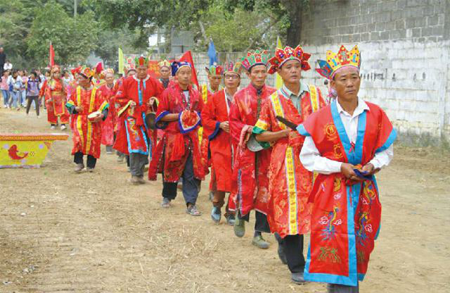 在酬謝自然之神后,由祭司念誦祭文,紀(jì)念民族英雄瓦氏夫人,頌揚瓦氏夫人率領(lǐng)將士打擊倭寇的英雄事跡,傳授民族歷史知識,宣揚保衛(wèi)家園、謀求平安的民族精神。