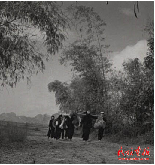 壯族青年男女們帶著口糧成群結(jié)隊(duì)地前來參加歌圩