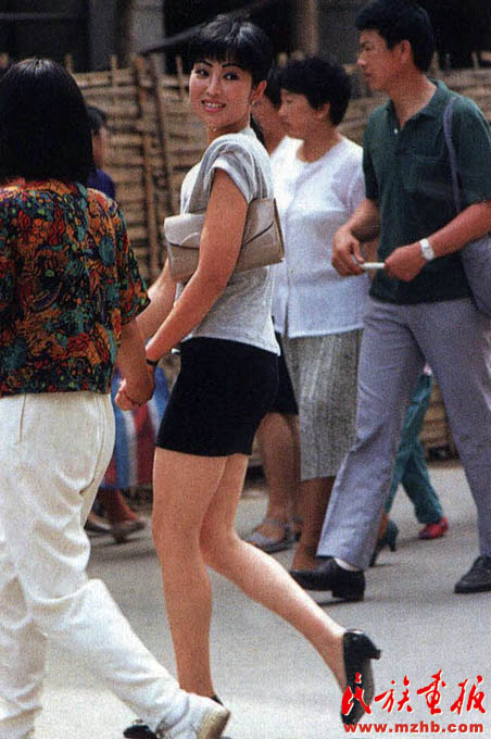 1991年,大連流行的超短裙風(fēng)韻獨(dú)具。20世紀(jì)90年代,曾經(jīng)被視為洪水猛獸的超短裙出現(xiàn),中國人對(duì)于服裝的追求越來越凸現(xiàn)個(gè)性。《民族畫報(bào)》2008年第12期