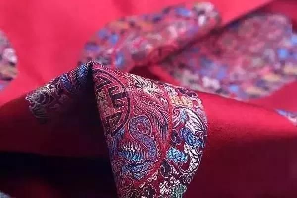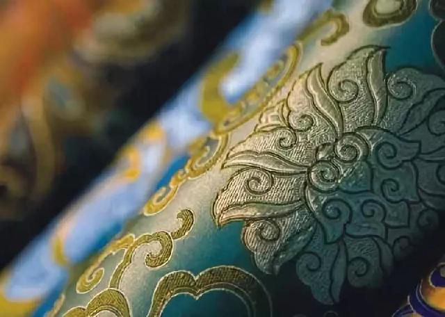 民族錦一般采用多色彩條嵌入金銀絲織成,多用于民族服飾,故名。其特點(diǎn)是錦面上的圖案從經(jīng)緯線交織中顯現(xiàn)出自然光彩,富有光澤。常見的圖案有團(tuán)花、葵花、“萬”字“壽”字等。彩暈錦的特點(diǎn)是織紋華貴相映,明暗匹配,層次分明,并以色暈過渡,花紋絢麗多彩,別具一格。