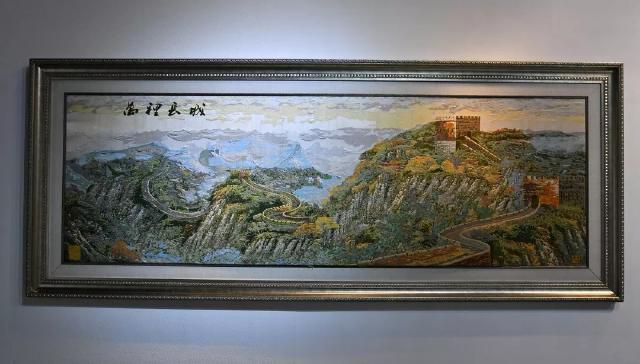 《萬里長城》是金文集數(shù)年之功完成的云錦巨制。觀者立于高山之巔,長城從峰巒疊嶂間伸向遠(yuǎn)方,更有一旁朝霞相伴,使畫面錯落有致,層次豐富。