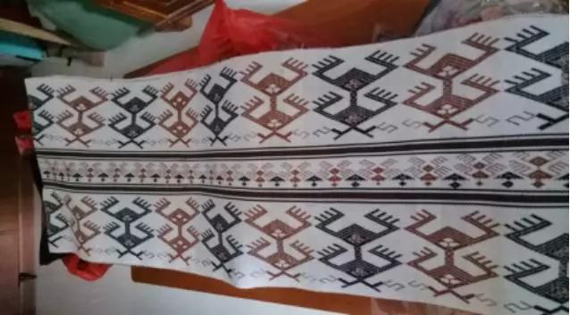 黎族沒有文字,多數(shù)是通過圖騰的方式來記錄歷史,本作品就將黎族生活場景融入織錦中。