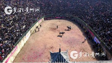 貴州省從江縣第十五屆原生態(tài)侗族大歌節(jié)的前一天,恰逢該縣逢亥斗牛日,丙妹鎮(zhèn)松學(xué)斗牛塘、谷坪鄉(xiāng)四寨河斗牛塘同時舉辦傳統(tǒng)牛王爭霸賽,喜迎一年一度“侗族大歌節(jié)”的到來,共有來自周邊村寨的80頭水牯牛參戰(zhàn),斗?;顒訄錾厦=侵?,場面異彩紛呈,吸引數(shù)萬名觀眾前來觀戰(zhàn)。