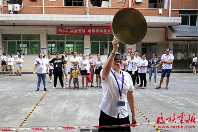 趣味運(yùn)動會結(jié)合民族地區(qū)開展的傳統(tǒng)體育項(xiàng)目,以及趣味競技游戲等,展示了少數(shù)民族傳統(tǒng)體育特色,如盲敲銅鑼和高蹺便是利用了民族地區(qū)的一些傳統(tǒng)活動改編而來的,另外還有團(tuán)隊(duì)協(xié)作的民族民間運(yùn)動項(xiàng)目手毽、拔河和板鞋競速等。200余名各族群眾參加了這些帶有濃厚民族特色的運(yùn)動項(xiàng)目。