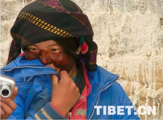 圖為涂擦“安達”的西藏婦女