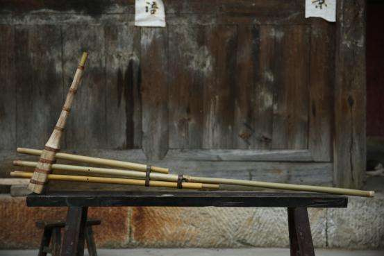 共鳴管:是套在笙管上端的一截竹管,可使音量明顯增大,多使用毛竹制作,依音高不同而異,以c、c1、c2三音為例,管長分別為60厘米、30厘米、15厘米,余者類推。以上所述為黔東南地區(qū)的苗族蘆笙;在黔中、黔南和黔西北,則流行著另一種形制的蘆笙,笙管用白竹或筍殼竹制作,下端管口不堵塞。上端用兩道竹篾箍緊,笙斗制作時中間不剖開,而是從粗端挖起,直通細端吹口部位,然后用圓木塞把粗端開口堵嚴,再用數(shù)道化篙皮箍住。