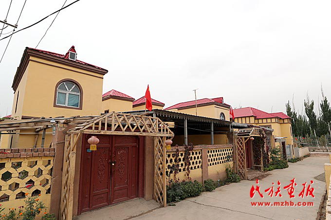 艾日克博依新村家家戶戶新居門上都掛著國(guó)旗。