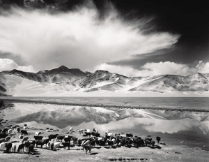 一臺古老而又沉重的相機,和由它帶來的幾分笨拙而又充滿儀式感的觀看世界的方式,正好對應了馮建國在中國西部尋夢的心境。如今,馮建國常教導學生,“你所向往的東西就純粹地去做”?;蛟S是帕米爾高原千年冰山的呼喚,或許是塔克拉瑪干沙漠遠古駝鈴的回響,還有青藏高原朝圣的腳步、誦經(jīng)的吟唱……印證了他對西部的無盡向往和與大畫幅黑白攝影的不解之緣。