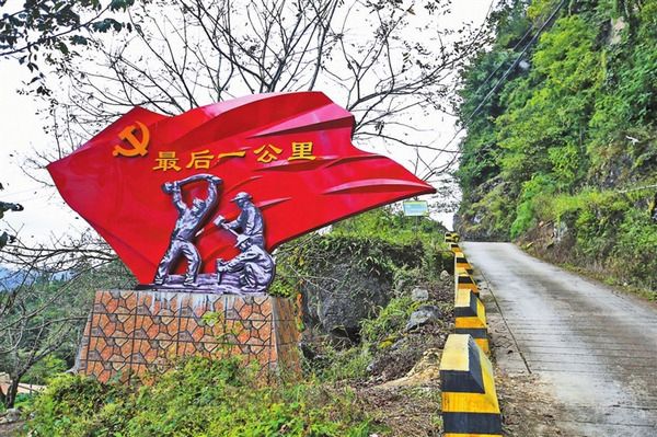 西灑鎮(zhèn)巖頭村,道路旁高聳的峭壁上鐫刻著兩個鮮紅大字——“實干”?!皻v時12年,我們在懸崖峭壁上硬生生劈出了4米寬進村路!”村民小組長李華明說,現(xiàn)在正與村民謀劃開辦“最后一公里”農(nóng)家飯莊,村里的“最后一公里”展覽館也正在建設(shè)。