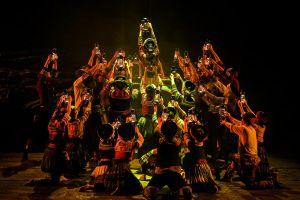 “《幸?;ㄉ健肥俏鳟牼裨谖枧_上的藝術(shù)表現(xiàn)和衍生。這個劇目展現(xiàn)了人類在面對困境時集體智慧的力量,闡釋了中國優(yōu)秀傳統(tǒng)文化的當代價值。希望觀眾通過這個劇目,能夠真正領(lǐng)悟‘幸福是奮斗出來的’這句話的深刻內(nèi)涵?!蔽纳街菝褡逦幕ぷ鲌F團長王成懷說。