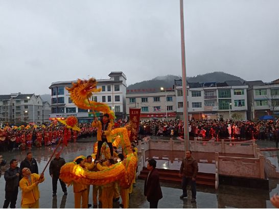 2019年2月16日農(nóng)歷正月十二是瓦寨鎮(zhèn)傳統(tǒng)大型集會活動日,舞龍為主要活動之一。午飯后,來自全縣各地的舞龍舞獅隊(duì)、花燈隊(duì)陸續(xù)到瓦寨政府廣場集結(jié),并在廣場右側(cè)有序排隊(duì)等待,各隊(duì)隊(duì)員精神抖擻、神采飛揚(yáng)、迫不及待。前來參觀元宵舞龍的群眾和游客也不斷涌向廣場,大街小巷行人猶如潮涌,吆喝聲、歡笑聲、鑼鼓聲連綿不斷……下午五時許,活動在瓦寨鎮(zhèn)政府廣場正式開始,先是由鎮(zhèn)領(lǐng)導(dǎo)對脫貧攻堅(jiān)各項(xiàng)惠民政策及5年來瓦寨取得的攻堅(jiān)戰(zhàn)績進(jìn)行宣講,宣講慳鏘有力、扣人心弦,特別是5年來瓦寨取得的攻堅(jiān)戰(zhàn)績,一致得到人民群眾好評和認(rèn)可。隨后,舞龍、舞獅、花燈表演紛紛上演,只見黃龍時而上下翻騰,時而昂首擺尾,雄獅時而就地打滾,時而賣萌撒嬌,樣子憨態(tài)可掬,花燈表演幽默滑稽,在前行中跑出各種套路,起伏波動、生動活潑,吸引了所有人的目光,贏得了陣陣喝彩……
