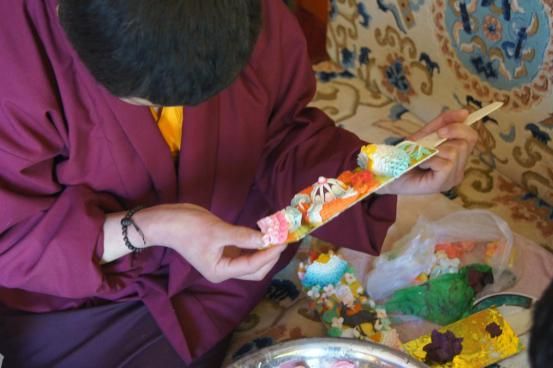 酥油花是藏族傳統(tǒng)工藝的古老藝術(shù)之一,又稱(chēng)油塑藝術(shù),是以酥油為材料而制成的特殊雕塑作品。每年冬天,由手工藝人們將酥油切成薄片,加上冷水,攪拌均勻,加入各種礦物顏料后雕塑而成。每年藏歷新年的一月十五日都會(huì)舉行盛大的酥油花藝術(shù)作品展覽活動(dòng)。
