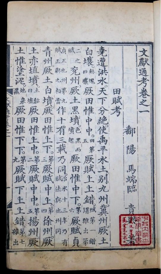 《文獻(xiàn)通考》為“十通”之一。“十通”即中國古代十部政書,系統(tǒng)完整地記錄了中國歷代典章制度沿革發(fā)展,為學(xué)習(xí)古代政治制度必不可少之參考書。“十通”始自唐代杜佑撰《通典》,連同此后宋鄭樵撰《通志》,元馬端臨撰《文獻(xiàn)通考》,合稱“三通”。清乾隆時加入官修的《續(xù)通典》《續(xù)通志》《續(xù)文獻(xiàn)通考》以及《清通典》《清通志》《清文獻(xiàn)通考》合稱“九通”。1935年再加上《清續(xù)文獻(xiàn)通考》,總稱為“十通”,其中以《文獻(xiàn)通考》最有價值。