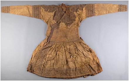 1978年出土于內(nèi)蒙古包頭達茂旗明水墓的蒙元辮線袍 內(nèi)蒙古博物院館藏一級文物