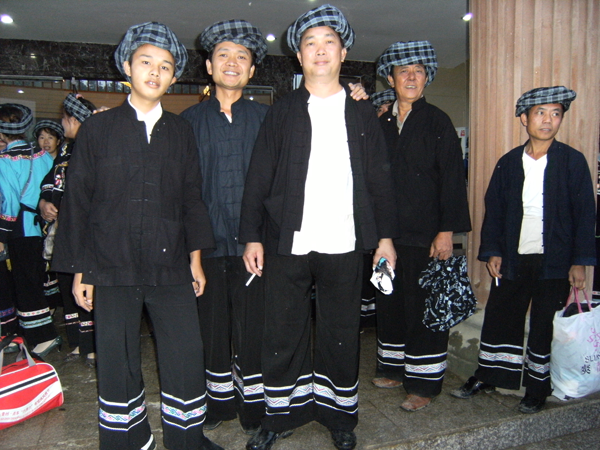 西南地區(qū)的服飾分布地區(qū)包括貴州省黔南布依族苗族自治州羅甸,黔西南州望謨、冊(cè)亨、貞豐、安龍、興義、興仁、安順市的鎮(zhèn)寧、關(guān)嶺、紫云三縣的南部以及云南省羅平等縣(市),基本上都屬于布依語第一土語區(qū)。這個(gè)地區(qū)婦女普遍穿大襟衣、長(zhǎng)褲腳。衣服的盤肩、袖口、襟沿鑲有蘭干。褲腳為大褶邊,或藍(lán)色褲腳鑲一截青布和蘭干。衣服的長(zhǎng)短和褲腳的大小,各地區(qū)都不相同。冊(cè)亨一帶衣服較短,褲腳短小,包花格長(zhǎng)帕,胸頸掛彩珠項(xiàng)圈,手套玉石或骨制手鐲;望謨一帶青年婦女把花格帕折疊后纏戴;貞豐一帶的衣服較長(zhǎng),褲腳不折邊,青年和老年婦女基本相同,但青年婦女包的花帕形狀如牛角(人稱“牛角帕”);靠近北部地區(qū),衣褲都較長(zhǎng),而且不鑲蘭干,衣褲和帕子多為青色;安龍、興義一帶則多包白帕,衣褲亦不鑲蘭干;西南一帶地區(qū)衣褲已漸不鑲蘭干,但還穿自織的土布衣服,頭上還包花格帕,一些地區(qū)與漢族婦女裝束完全一樣了。