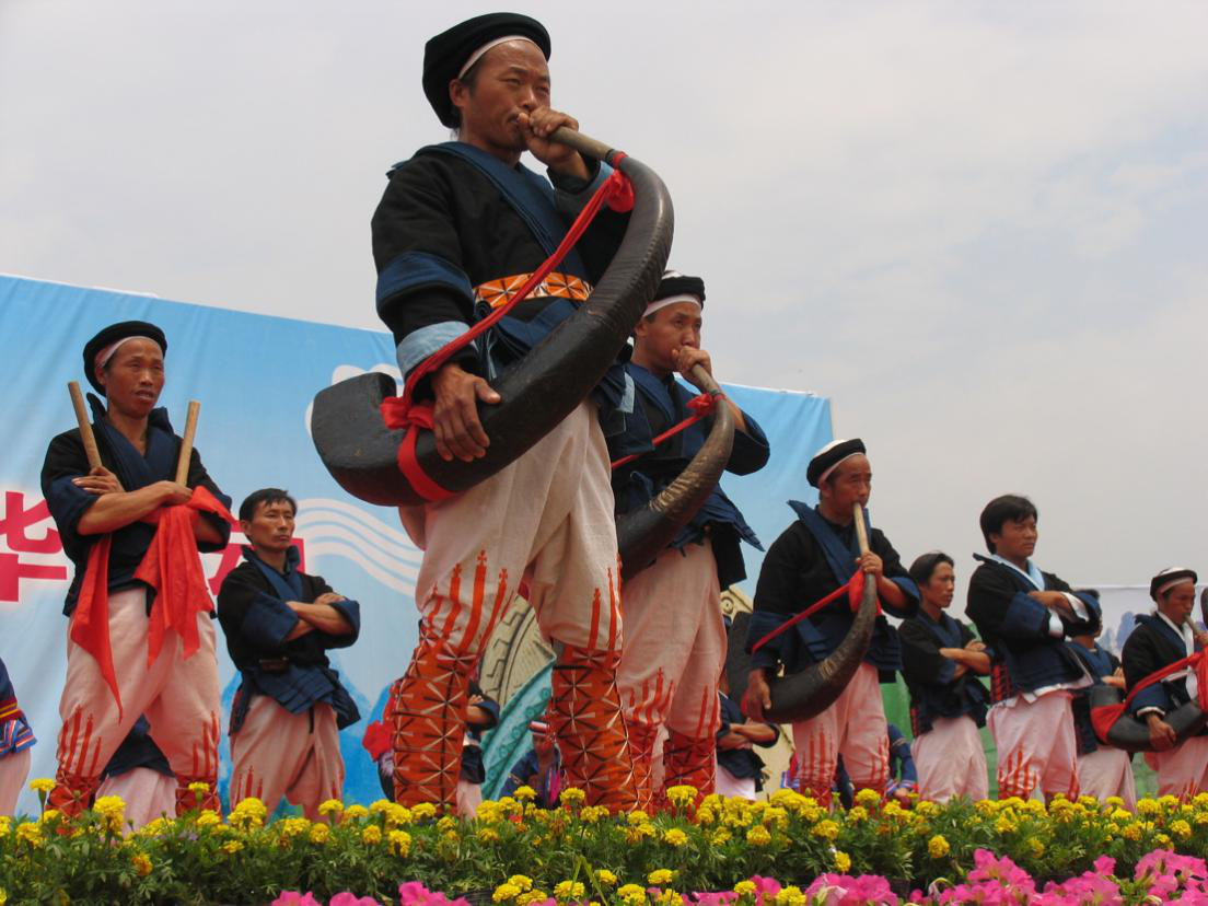 瑤族人民在節(jié)日慶典活動(dòng)上用民族樂器演出(劉軍攝)