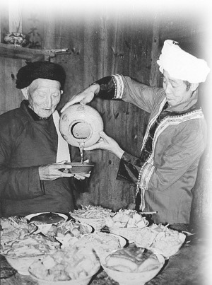 土家族在紅白喜事和平常請客吃飯時,坐席是很有講究的,誰坐上席,哪些人先坐席都有一定的規(guī)矩。特別是在紅喜事中,支客司的一個主要任務(wù),就是要把酒席上的客支好,不然就會得罪客人,甚至?xí)斐捎H戚間不相往來的局面。從土家族的坐席中,可以看到土家族對長輩、親戚、客人的尊重。