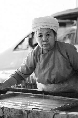 傣族老大媽制作的構紙